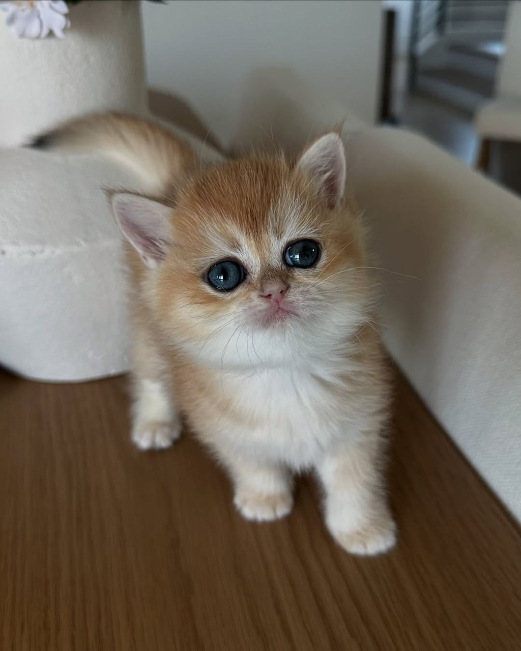 A Little Star! Meet Apollo! ⭐ This exquisite Golden Point British Shorthair kitten is exceptionally rare, featuring a shimmering apricot coat and intense, crystalline blue eyes. His striking color and adorable face make him a truly sought-after purebred shorthair. Apollo is a charming, fluffy cat, perfect for a discerning family looking for a luxury kitten and one of the most affectionate cat breeds.