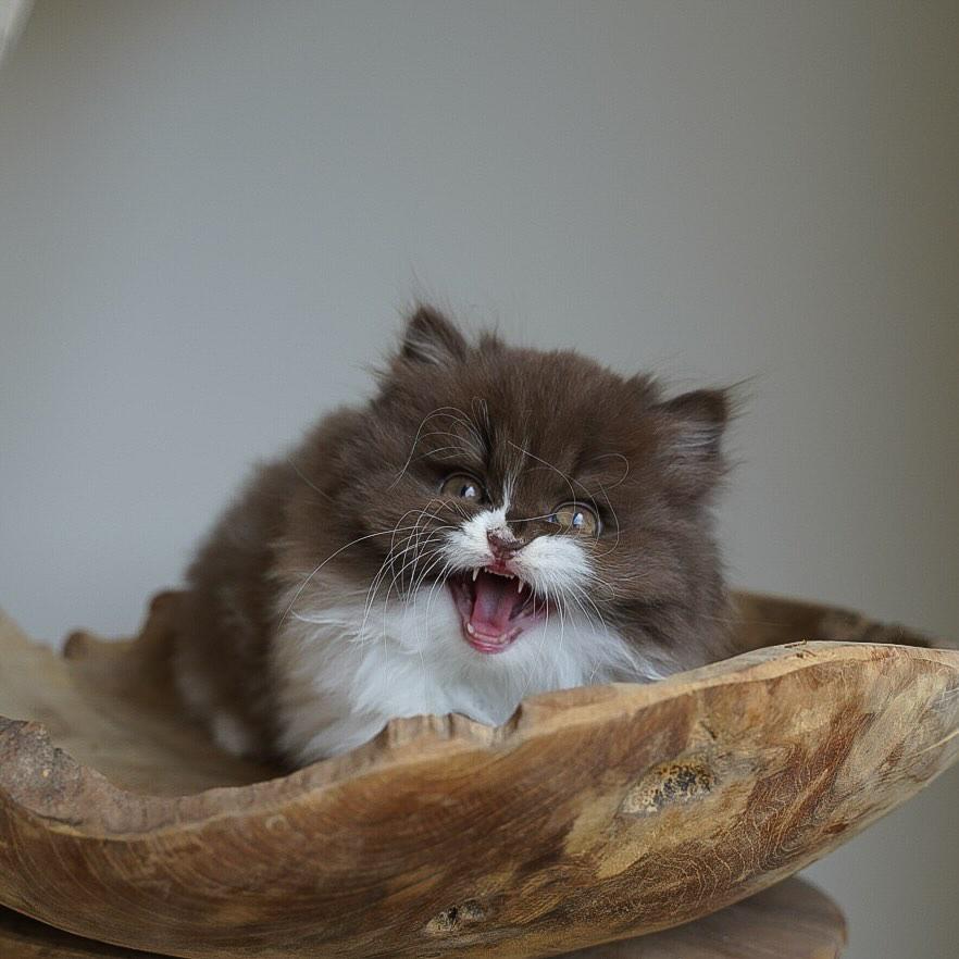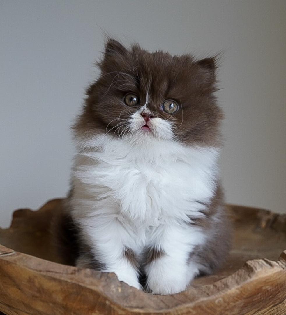 Meet Chico! Our exceptionally handsome Chocolate Bi-Color British Longhair kitten (often called a Fluffy British Shorthair). His stunning long coat, rich chocolate patches, and deep copper eyes make him a true showstopper. Chico is a sweet, playful, and deeply loyal purebred kitten, representing one of the most affectionate cat breeds. Secure this magnificent fluffy cat companion today!