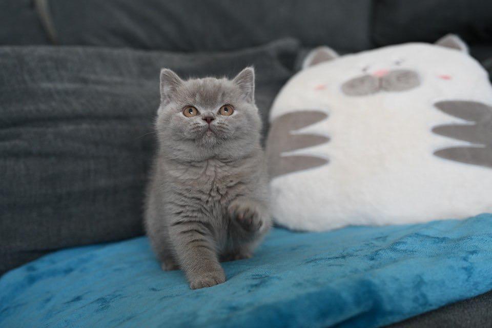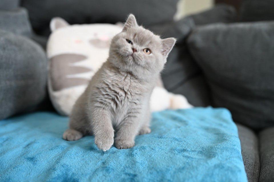 Introducing Luna! This exquisite Solid Blue British Shorthair kitten embodies the iconic charm of the breed. With her dense, luxurious blue coat and captivating copper eyes, Luna is a picture of serene beauty. Known for their calm demeanor and being one of the most affectionate cat breeds, this purebred shorthair will quickly become a cherished fluffy cat family member. She’s playful, sweet, and ready for cuddles!
